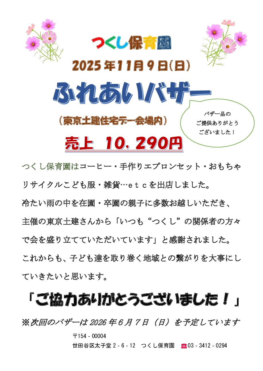 つくし保育園からのお知らせ